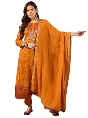Vaamsi Women's Georgette Embroidered Flared Angrakha Pant With Dupatta With Inner